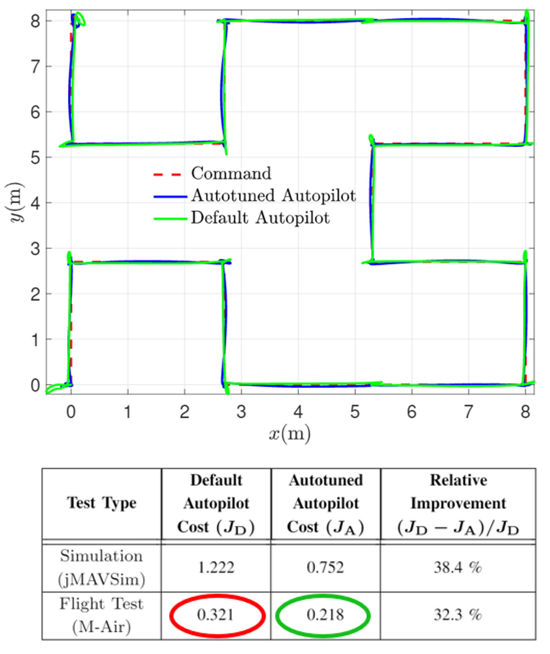 The project was successful. We demonstrated that RCAC is capable of learning the controller coefficients from a cold-start and then flying a Hilbert Trajectory with greater precision than the default autopilot (shown right).