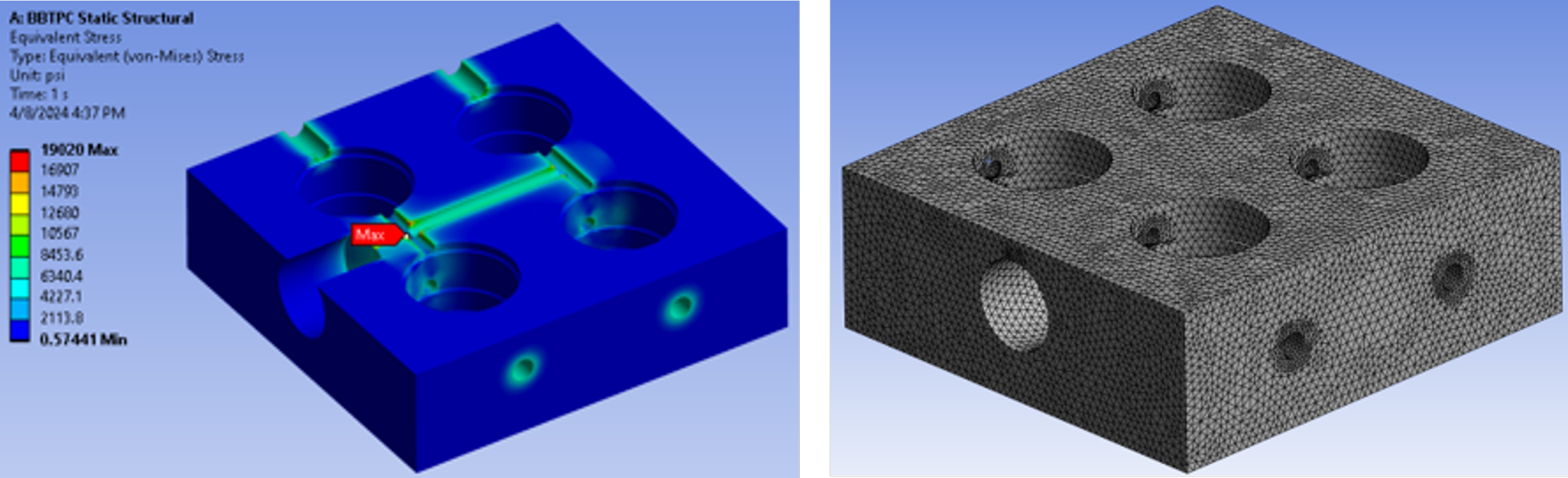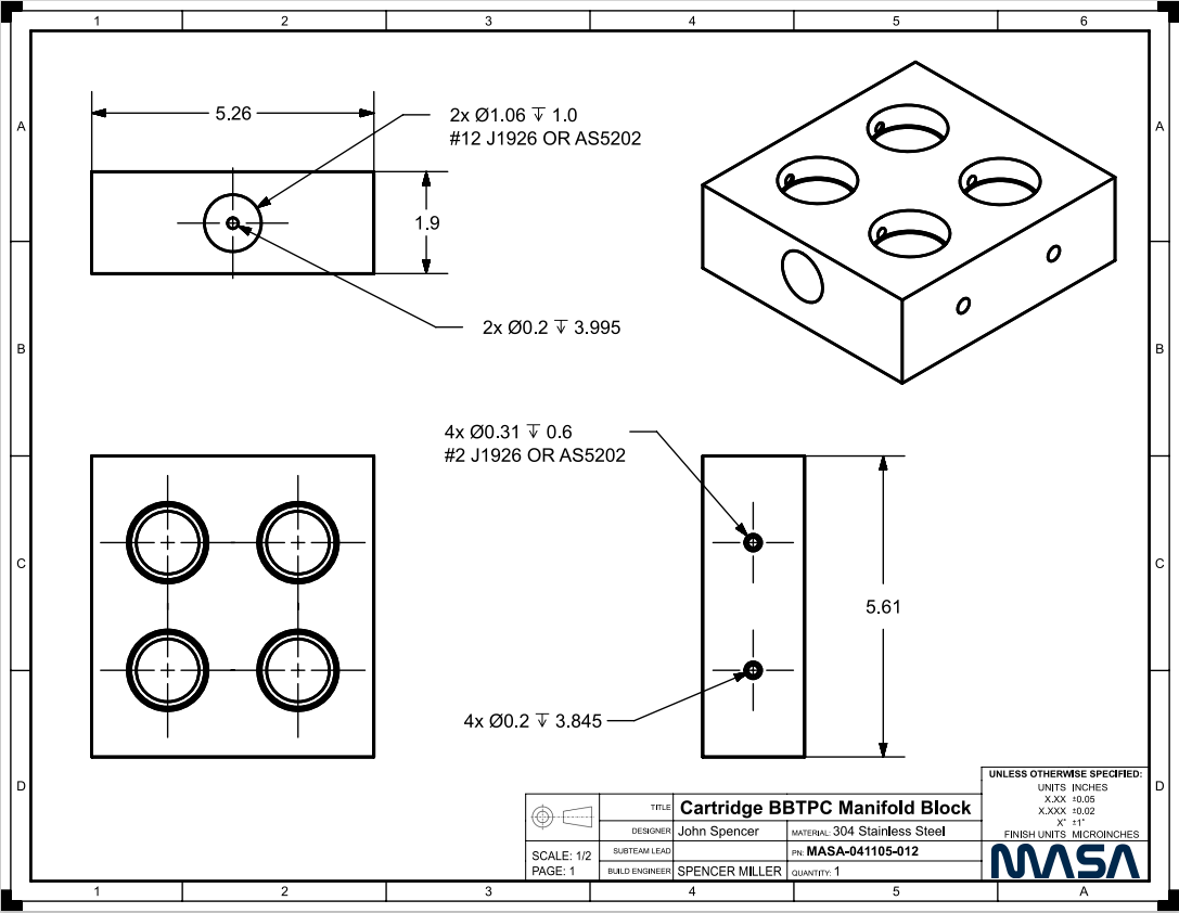 As part of the UM rocketry team MASA, I designed, fabricated, and tested BBTPC hardware for a kerolox rocket engine. I designed a fluid manifold for cartridge valves using CAD and FEA, created engineering drawings, sourced control valves, fabricated fluid system hardware, and supported high-pressure (3700 psig) test operations.